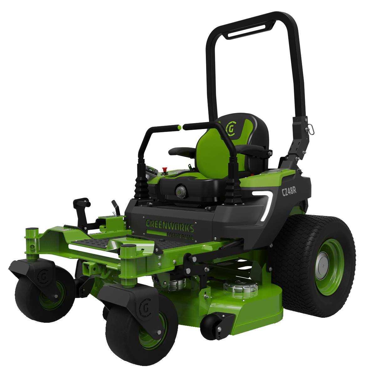 The GREENWORKS® 48″ OptimusZ Zero Turn Mower, equipped with an 18kWh battery, represents the pinnacle of commercial mowing technology. This 82V mower is not just a cutting machine; it’s a testament to advanced engineering and performance. Designed to handle the toughest mowing tasks, it combines high power, efficiency, and the latest in smart technology to deliver an unrivaled mowing experience.